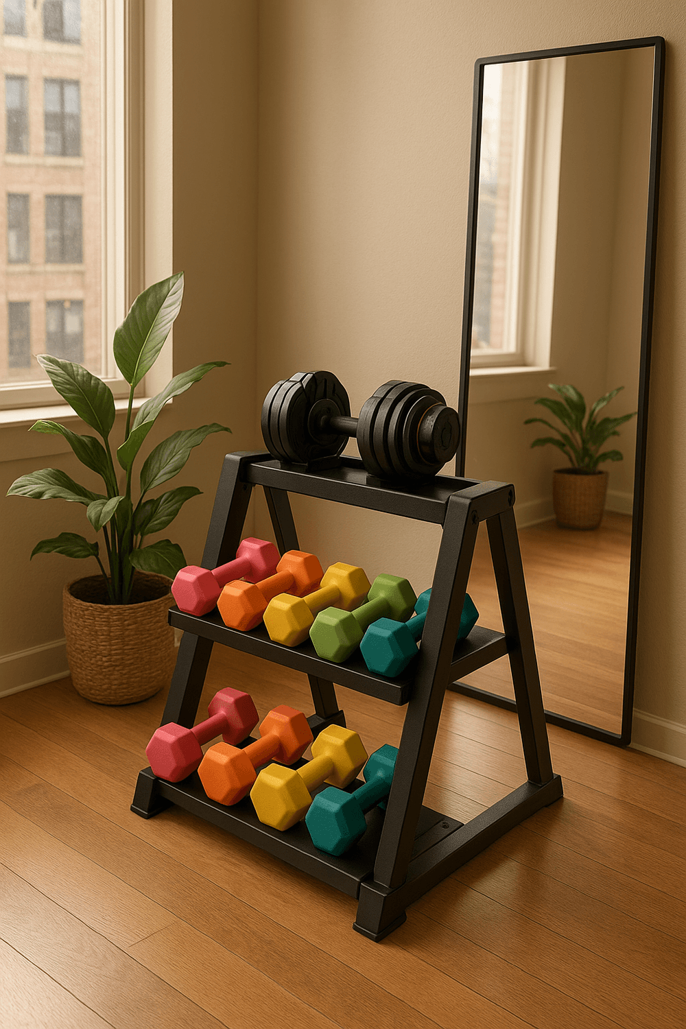 Each rack on this list was picked for stability, compact design, and easy access — all tested to handle real apartment workouts. Whether you’re rocking adjustable dumbbells or a full iron set, there’s a rack that fits your style and footprint.